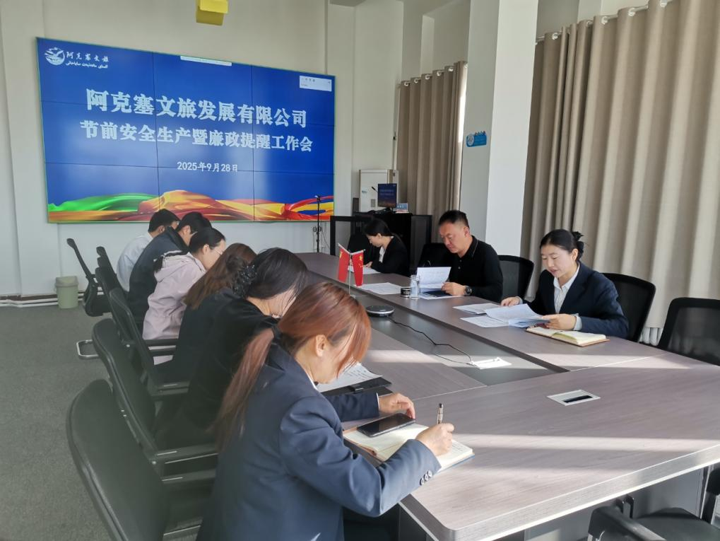 9月28日上午,文旅公司召開(kāi)節(jié)前安全生產(chǎn)工作暨廉政提醒會(huì)議,傳達(dá)學(xué)習(xí)了省、市、縣安全生產(chǎn)工作文件精神,并開(kāi)展節(jié)前廉政提醒,專(zhuān)題部署國(guó)慶、中秋“雙節(jié)”期間值班工作,并就節(jié)日期間重點(diǎn)工作任務(wù)提出明確要求。會(huì)議指出,全體職工要清醒認(rèn)識(shí)節(jié)日期間安全生...